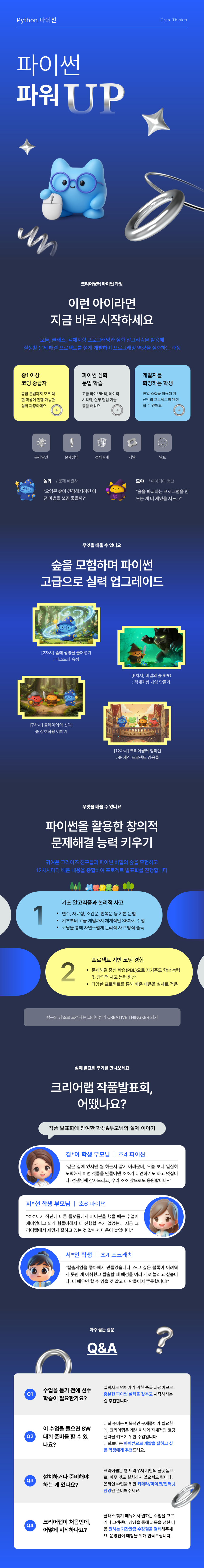 코딩은 어렵고 복잡한 것이 아니라, 상상을 현실로 만드는 마법 같은 도구예요! 블록을 조립하듯 쉽게 배우고, 논리적인 사고를 키우며, 창의적인 아이디어를 직접 구현할 수 있답니다.